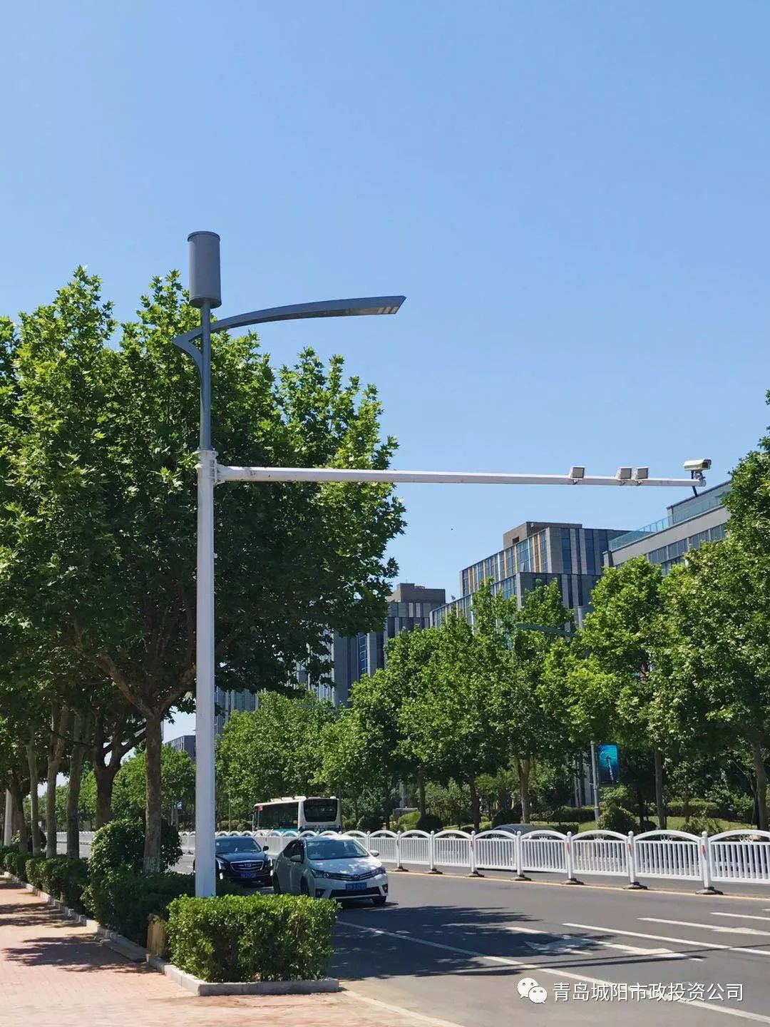 城陽市政投資公司積極爭取區城管、交警等部門支持,開啟綠色通道,為5G智慧燈桿示范路建設創造良好外部條件,項目由青島藍海陽光能源有限公司實施。