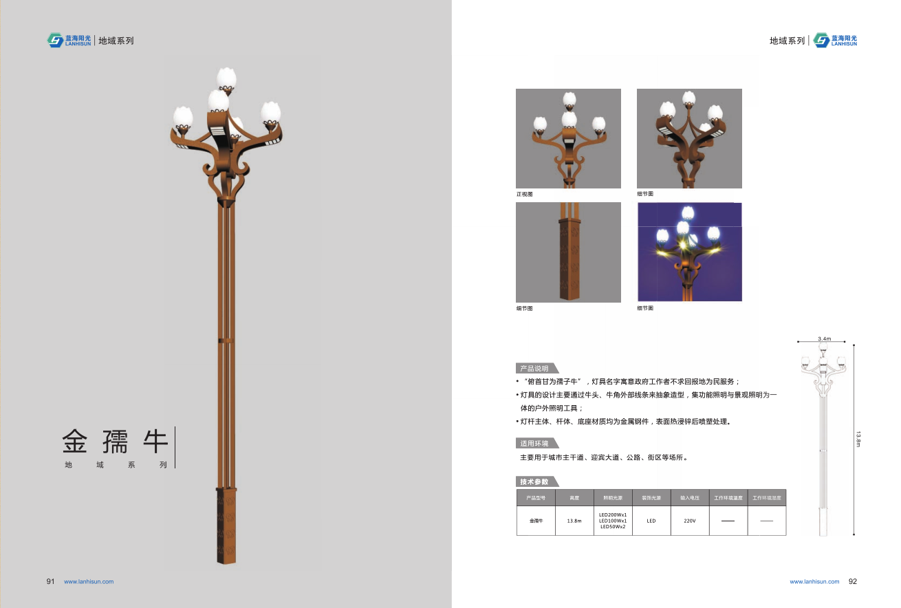 1、高度為6-16米; 2、花葉光源為4組LED光源,色溫2500-6500K,其余光源為LED裝飾光源,每個光源功率為30-60W; 3、LED驅(qū)動電源壽命可達(dá)五年; 4、整體熱鍍鋅噴塑,保證燈桿15年不生銹; 5、可以根據(jù)使用地區(qū)的地域文化、產(chǎn)業(yè)特點等進(jìn)行文化定制;