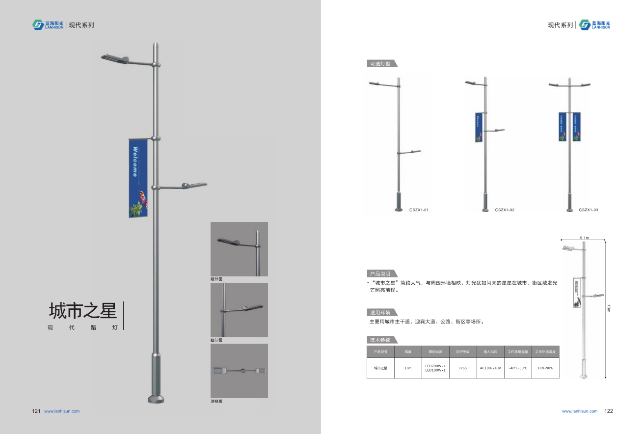 1、高度為6-16米; 2、光源為2組LED光源,色溫2500-6500K,每個(gè)光源功率為60-300W; 3、LED驅(qū)動(dòng)電源壽命可達(dá)五年; 4、整體熱鍍鋅噴塑,保證燈桿15年不生銹; 5、可以根據(jù)使用地區(qū)的地域文化、產(chǎn)業(yè)特點(diǎn)等進(jìn)行文化定制;