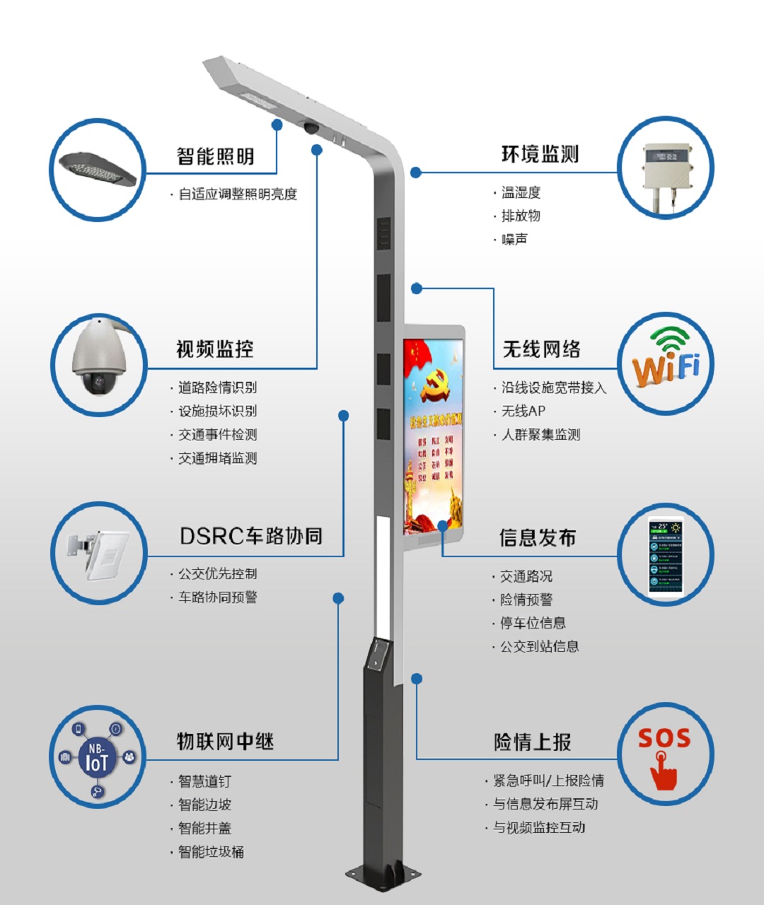 城市作為人類生活的主體,而智慧城市則毫無疑問成為了物聯網時代的熱流。路燈作為城市最基礎的設施之一,現在已經不僅僅只是負責城市的公共照明,它在節約能源的同時還被賦予了城市信息采集終端、城市安全和便民服務的使命。如今的路燈早已不再是單純的照明工具,集合照明、安防、充電、WIFI等功能的智慧燈桿成為了未來智慧城市的主要發展趨勢。???